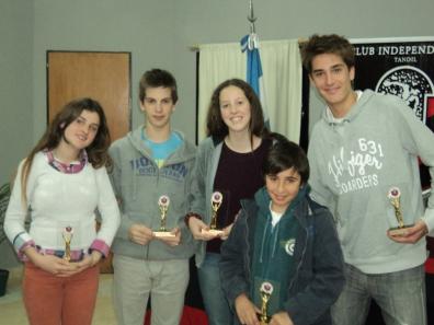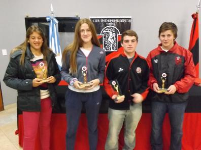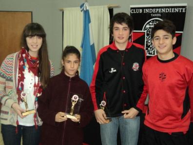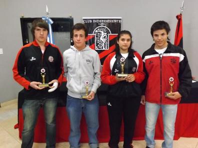 Hace poco más de una semana, en la fiesta por los 94 años del club Independiente, la dirigencia rojinegra aprovechó para destacar a los mejores deportistas de cada disciplina durante el año pasado. Cabe recordar que la institución viene entregando estos premios a sus jóvenes promeses mes a mes y en ocasión de un nuevo aniversario se aprovechó la oportunidad para mencionar a los que sobresalieron en cada una de las disciplinas deportivas. A continuación le detallamos los valores de cada una de las jóvenes promesas que fueron los destacados 2011: LISANDRO ARCHUBY EL DESTACADO DEL FÚTBOL El talentoso futbolista Lisandro Archuby fue distinguido como el destacado 2011 en fútbol. Hoy el jugador tiene una lesión que lo mantiene alejado de las canchas pero igualmente sigue de cerca a sus amigos y compañeros en el actual torneo. El año pasado representó a la sexta división roja durante el torneo destacándose no solo en lo deportivo, con muy buenos rendimientos los fines de semana en los compromisos oficiales, sino que también en el cumplimiento a las prácticas, mostrando compromiso, dedicación, seriedad y gran humildad, solidario y gran compañero. Hoy Lisandro tiene una lesión que lo mantiene momentáneamente fuera del campo de juego pero no lejos de sus compañeros y amigos acompañándolos permanentemente en este 2012. JOSEFINA ANTUNEZ DISTINGUIDA EN VÓLEY La jugadora de vóley fue proclamada como la destacada 2011 en su deporte y recibió el galardón en la fiesta del club por los 94 años. Esta deportista es un claro ejemplo dentro y fuera de la cancha. Se destaca esta jugadora por su constancia, sus ganas y sus logros deportivos. Josefina pertenece a la categoría sub. 18 y siempre aporto para que ese grupo siguiera adelante: sumamente comprometida con la disciplina, el grupo y la institución. IGNACIO ZULBERTI FUE RECONOCIDO POR SU DESEMPEÑO EN BÁSQUET El juvenil deportista de las inferiores del básquet rojinegro recibió el premio como el destacado del 2011 en su disciplina en la fiesta por los 94 años de la institución. Jugador que en el 2011 fue determinante en su categoría sub 15, líder de equipo condujo a sus compañeros dentro y fuera de la cancha culminando con excelentes resultados tanto en torneos locales como provinciales. En este 2012 con tan solo 15 años, participo activamente en el plantel sub 19 que disputo la última edición de la liga provincial de esa categoría. SOFÍA DI PASCUALE FUE DISTINGUIDA EN HOCKEY Sofía Di Pascuale fue reconocida como una de la más destacada durante el 2011. Jugadora del sub 16 de Independiente, integró el seleccionado de Tandil de la Categoría sub 18 que fue a disputar el Argentino "A" a Tucumán el mes pasado. Es Integrante del equipo de 1era división del club que este año va a participar de la Liga Nacional y esta citada para integrar una posible concentración nacional. Muy buena compañera y dedicada al deporte y a defender los colores de esta prestigiosa institución. IÑAKI IRIBERRI DISTINGUIDO EN TENIS El tenista fue el destacado 2011 en el tenis rojinegro. Un chico que sigue en ascenso y es una de las grandes promesas en esta disciplina dentro de nuestra institución. Su hermano, en la fiesta aniversario de Independiente, recibió el premio. Actualmente se encuentra en Estados Unidos compitiendo en el circuito de dicho país, cerrando su circuito en el mes de noviembre con la participación en el torneo Orange Bowl.
