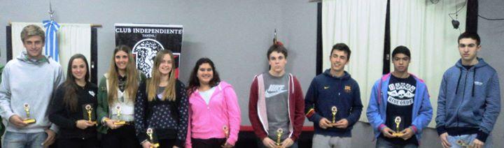 El club Independiente sigue entregando mensualmente los premios destacados. Los mismos se otorgan por deporte y cada ganador debe reunir una serie de requisitos determinantes para obtener este galardón. Habitualmente los profesores y coordinadores de cada una de las actividades, los seleccionan por su buena voluntad, compañerismo, solidaridad y respeto hacía sus compañeros y formadores. En las cinco disciplinas se les entregó el premio a los jóvenes deportistas que vienen cumpliendo una correcta actuación dentro de su categoría. A continuación detallamos los ganadores de cada deporte: VOLEY: Rosario Weber: demostró gran compromiso con la actividad. Además de ser constante en los entrenamientos y con gran asistencia. Siempre apoyando a la disciplina y a su equipo. FUTBOL: Genaro Alessio (foto): jugador de primera división del club, destacándose por su calidad deportiva que, día a día, va creciendo. Deportista humilde y comprometido con el equipo. HOCKEY: Catalina Premezzi: integró recientemente el seleccionado de Tandil, jugadora del equipo de liga nacional y de primera de la entidad rojinegra. Responsable, compañera y juega desde muy pequeña en el club. BASQUET: Jonatan Carabajal: jugador que trabaja constantemente para superarse con gran esfuerzo, destacándose en el torneo de la asociación de Mar del Plata y en la última liga junior. Buen compañero y con una enorme adaptación al grupo. TENIS: Santiago Franchini: tiene mucha facilidad para jugar, representando a la federación del centro de la provincia de Buenos Aires en los torneos nacionales. Es muy trabajador y gran compañero.