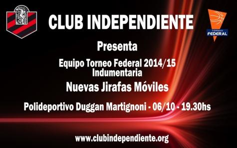 El mes pasado, en Capital Federal, se conoció el camino para Independiente en el Torneo Federal de Básquet. La competencia arrancará el 12 de octubre, ese día los orientados por Alvaro Castineira se enfrentarán a San Martín de Junín. La primera fase de la división Buenos Aires se jugará hasta el 15 de diciembre, luego habrá un receso de tres semanas para volver a la competencia en enero de 2013. A continuación le detallamos el cronograma de partidos para la zona integrada por Independiente: División: BUENOS AIRES 1 ra Fecha: Independiente Tandil vs San Martin Junin Viernes 12 de Octubre Estudiantes (LP) vs Union Vecinal (LP) Sábado 13 de Octubre Libre: Estudiantes (O) 2 da fecha: Estudiantes (O) vs Estudiantes (LP) Viernes 19 de Octubre Union Vecinal (LP) vs Independiente (Tandil) Sábado 20 de Octubre Libre: San Martin (J) 3 ra fecha: San Martin (J) vs Union Vecinal (LP) Jueves 25 de Octubre Independiente (Tandil) vs Estudiantes (O) Viernes 26 de Octubre Libre: Estudiantes (LP) 4 ta fecha: Estudiantes (o) vs San Martin Junin Viernes 2 de Noviembre Estudiantes (LP) vs Independiente (T) Sábado 3 de Noviembre Libre: Union Vecinal (LP) 5 ta fecha: San Martin (Junin) vs Estudiantes (LP) Jueves 8 de Noviembre Union Vecinal (LP) vs Estudiantes (O) Sábado 10 de Noviembre Libre: Independiente (T) 6 ta fecha: San Martin Junin vs Independiente (Tandil) Jueves 15 de Noviembre Union Vecinal (LP) vs Estudiantes (LP) Sábado 17 de Noviembre Libre: Estudiantes (O) 7 ma fecha: Independiente (Tandil) vs Union Vecinal (LP) Viernes 23 de Noviembre Estudiantes (LP) vs Estudiantes (O) Sábado 24 de Noviembre Libre: San Martin (J) 8 va fecha: Estudiantes (O) vs Independiente (T)Viernes 30 de Noviembre Union Vecinal (LP) vs San Martin (J)Sabado 1 de Diciembre Libre: Estudiantes (LP) 9 na fecha: San Martin Junin vs Estudiantes (O) Jueves 6 de Diciembre Independiente (T) vs Estudiantes (LP) Viernes 7 de Diciembre Libre: Union Vecinal (LP) 10 ma fecha: Estudiantes (O) vs Union Vecinal (LP) Viernes 14 de Diciembre Estudiantes (LP) vs San Martin Junin Sábado 15 de Diciembre Libre: Independiente (T)